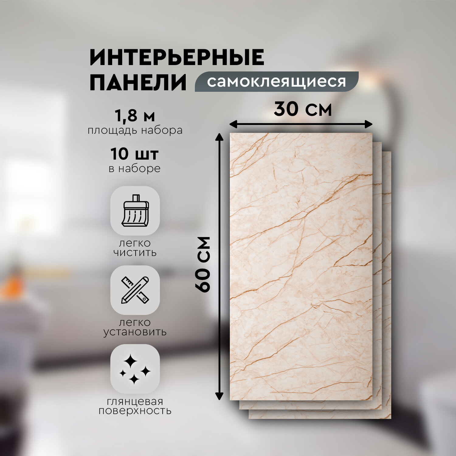 Панели самоклеящиеся для стен 30х60 см. 10 шт. бежевый мрамор