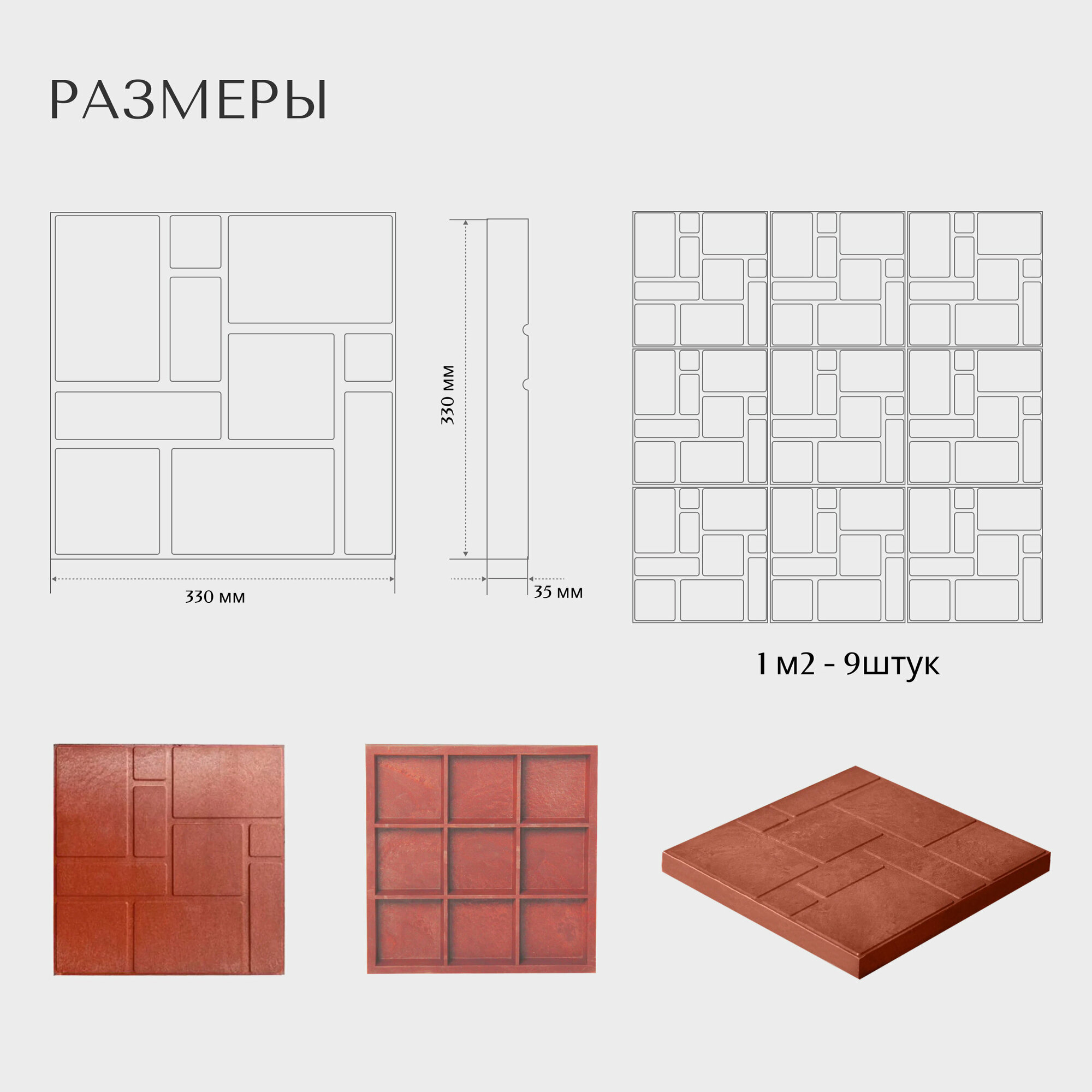 Плитка тротуарная полимерпесчаная 33х33х3,5см, 6 шт (0,65м2) интересное: