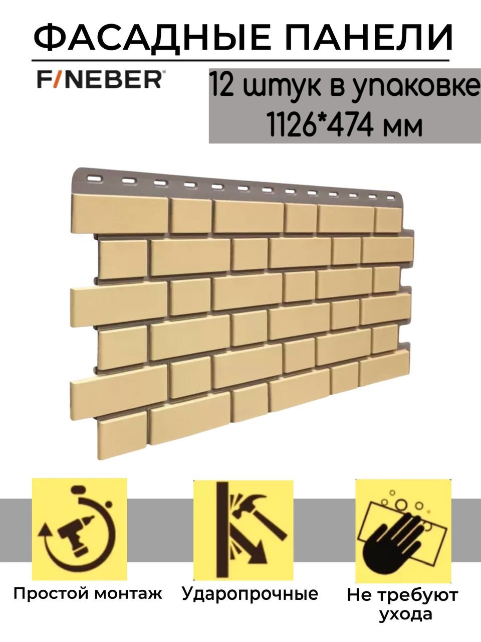 Фасадная панель Fineber "Кирпич клинкерный", желтый, полипропилен, 1126x474x12 шт