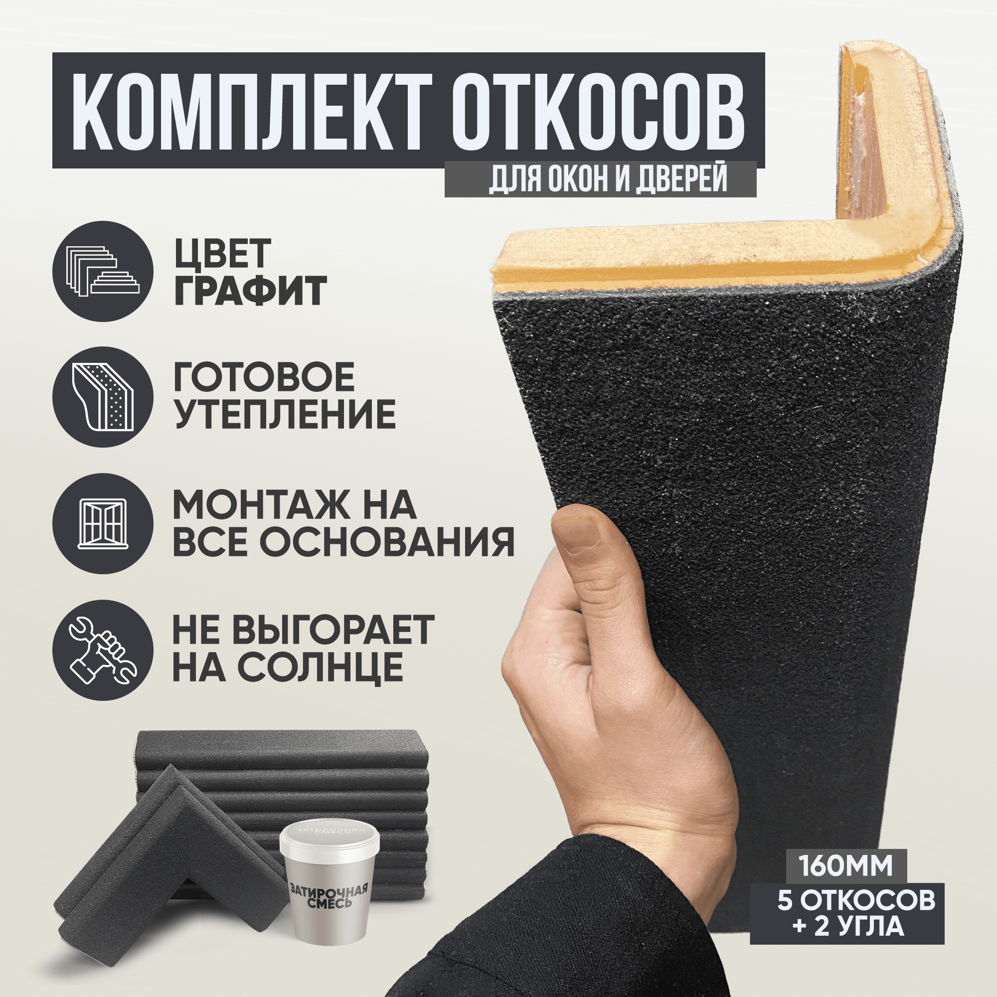 СохранитьОконные Откосы Утепленные, Фасадные, Набор на окно (с углами), цвет Графит, 5 откосов + 2 угла, глубина 160 мм интересное: