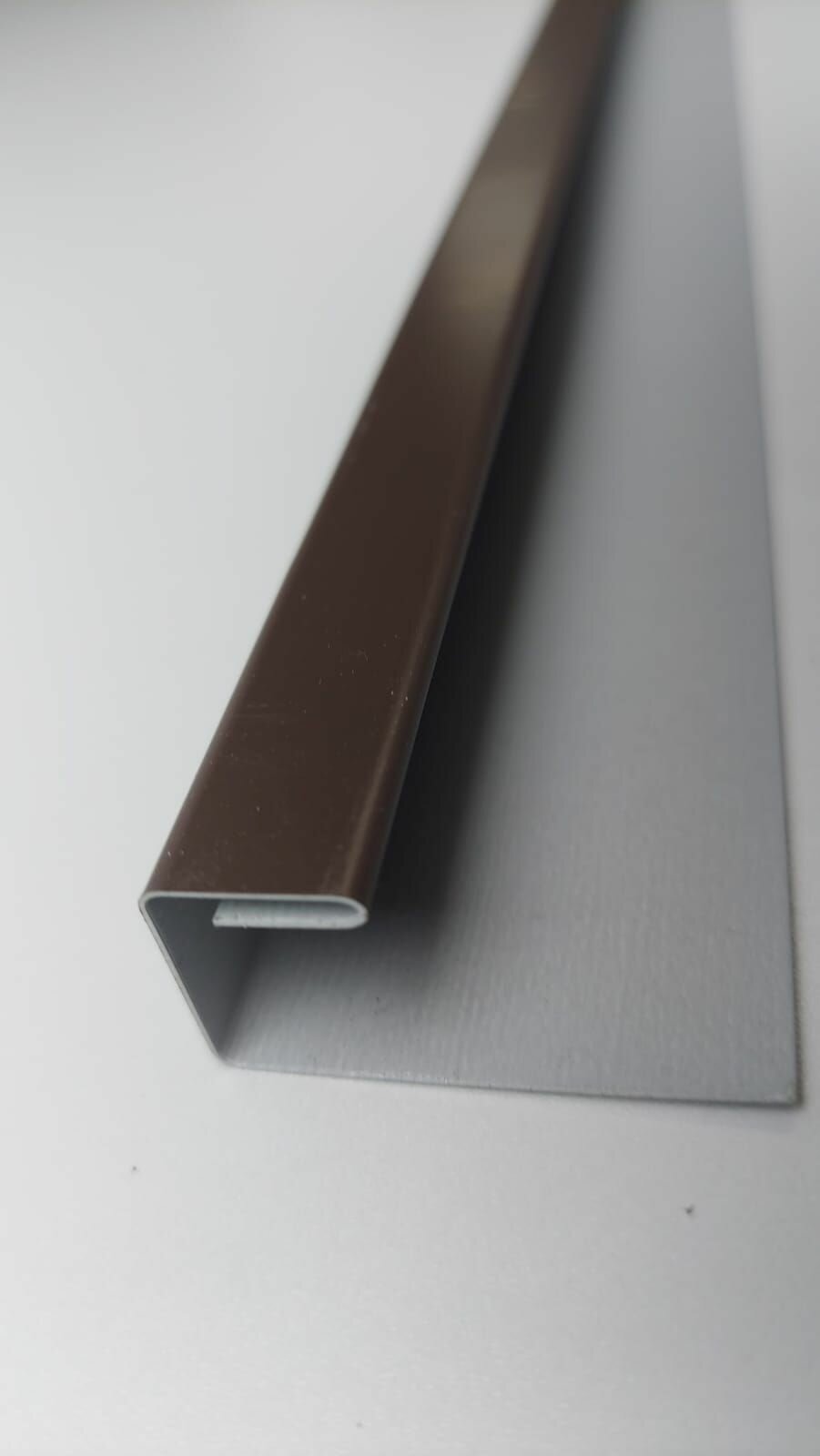 Планка финишная,стартовая, j-профиль, джи профиль металлический, наличник, планка для забора, цвет коричневый. шоколад. интересное: