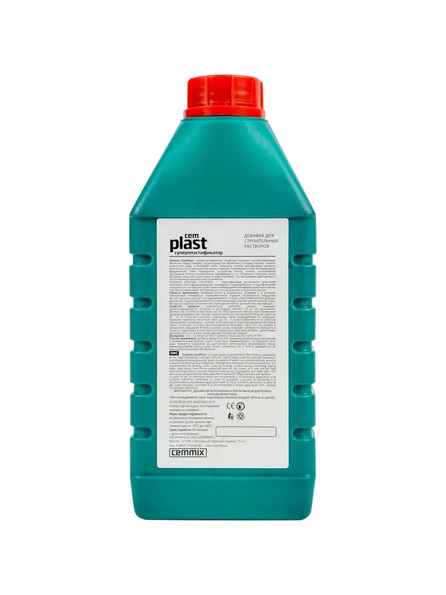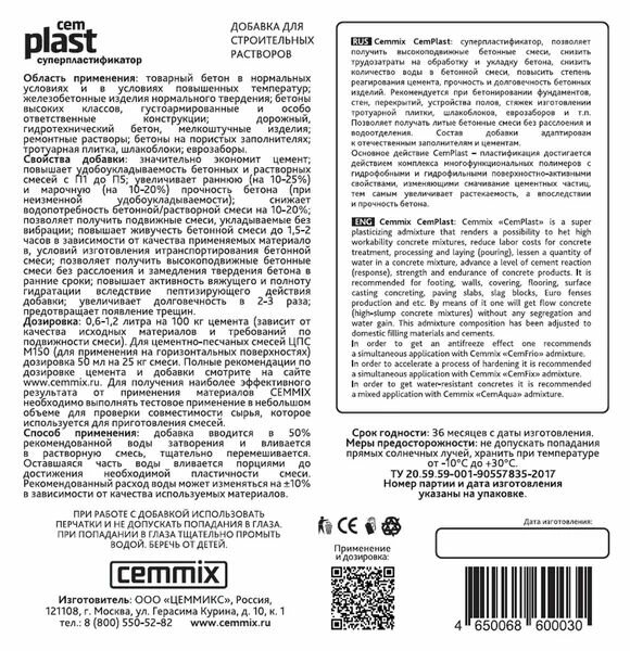 CEMMIX CEMMIX пластификатор CEMPLAST 1 Л 1/20/640 206780 интересное: