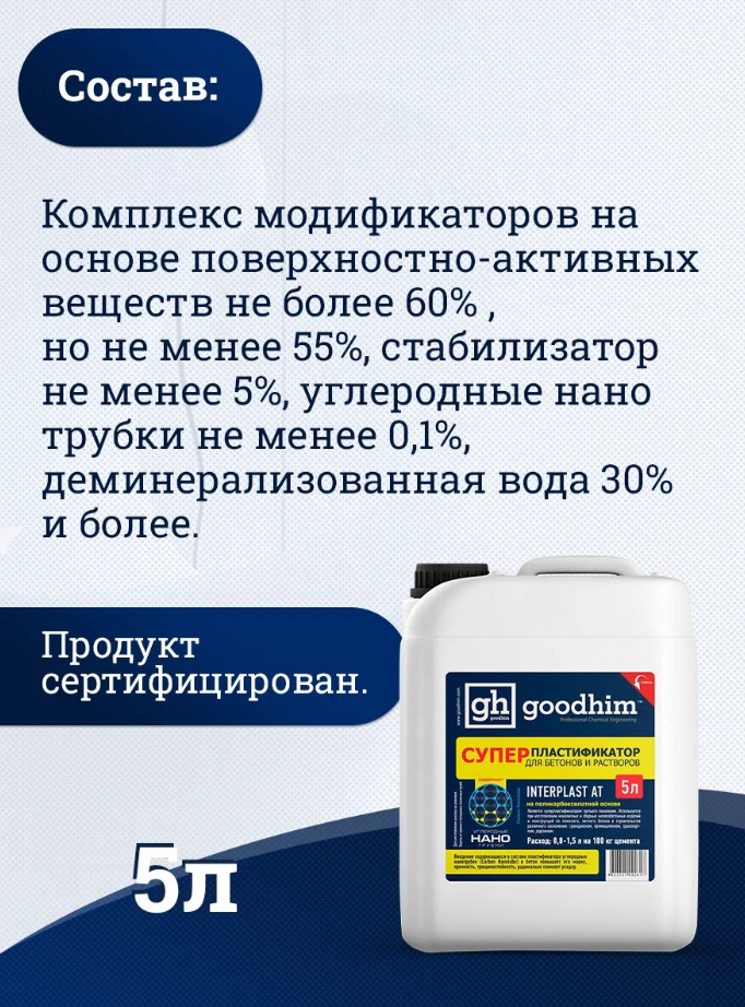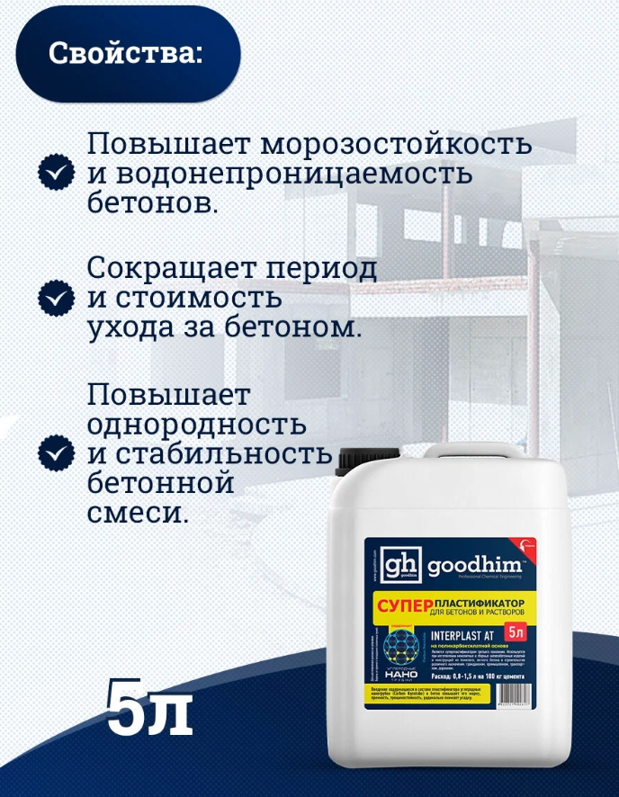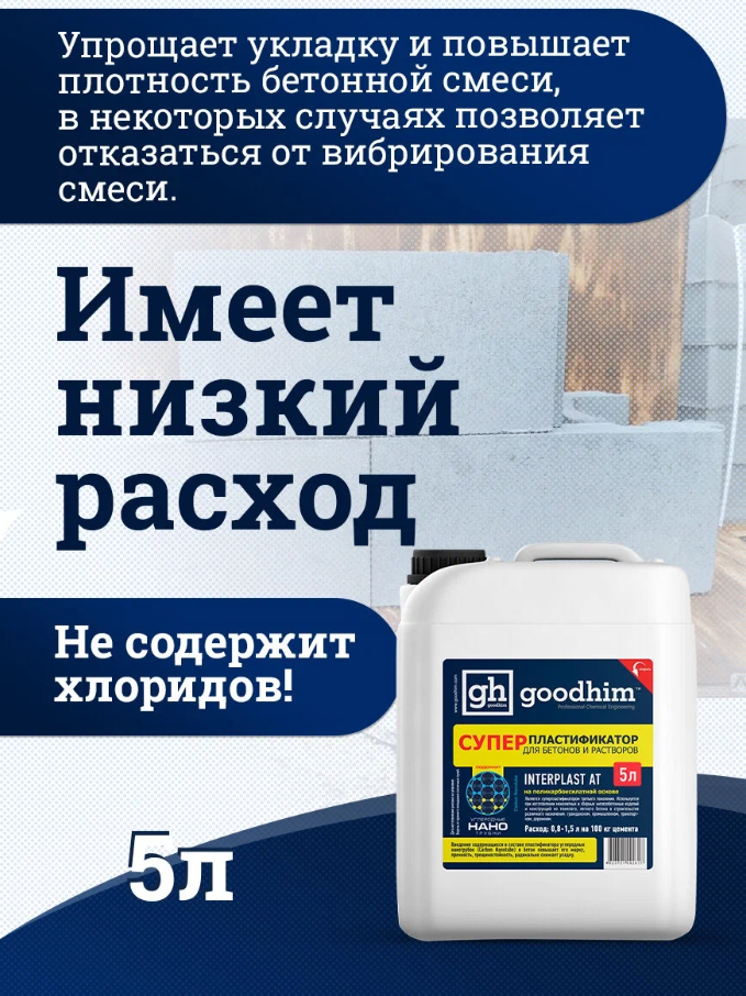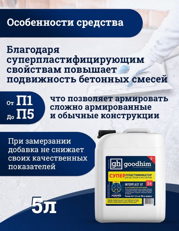 Суперпластификатор для бетонов и растворов Goodhim INTERPLAST AT, 5 л интересное: