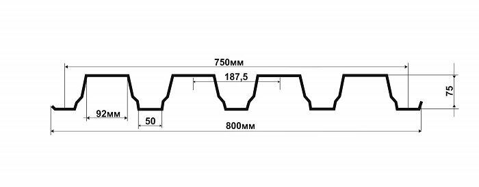 Купить Профнастил Н-75 0,5 мм оцинкованный (2 метра) 5 штук
