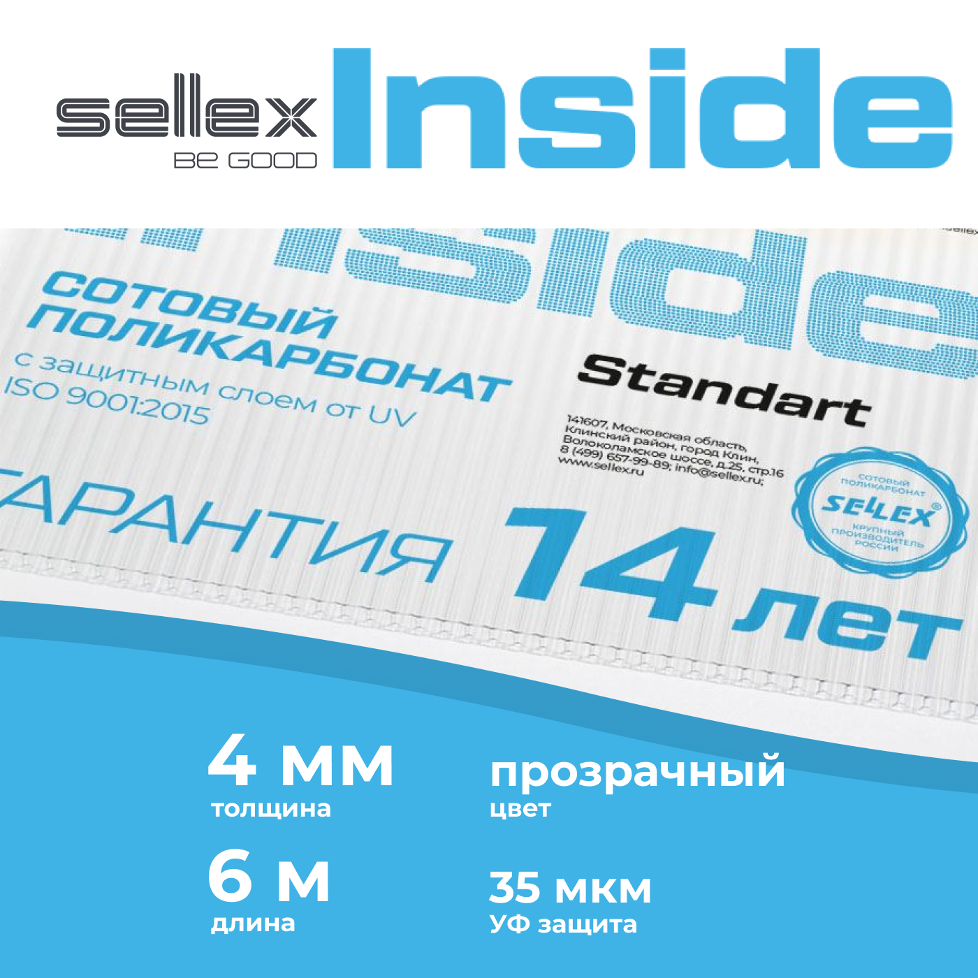 4 мм прозрачный поликарбонат Sellex Inside 4 листа по 6 метров