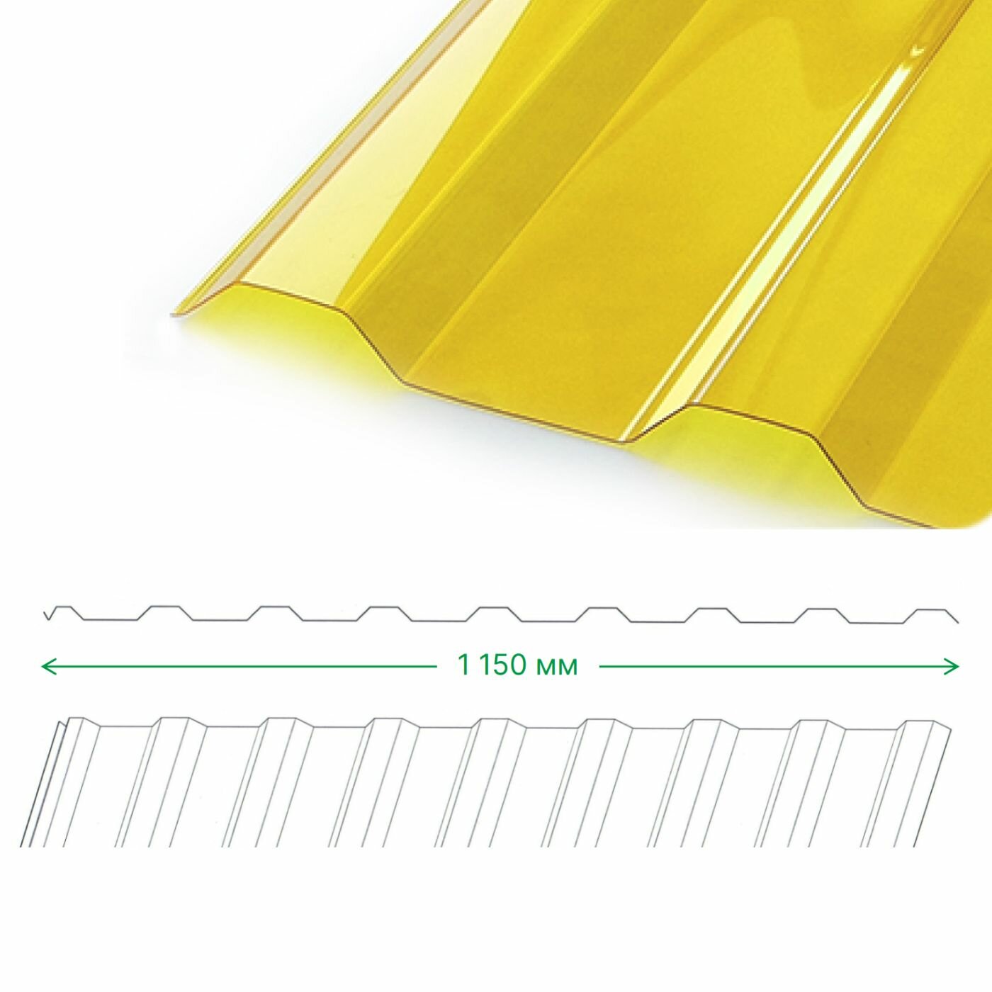Профилированный поликарбонат МП-20 1,15х2,0 м, толщина 0,8 мм, цвет: Желтый интересное: