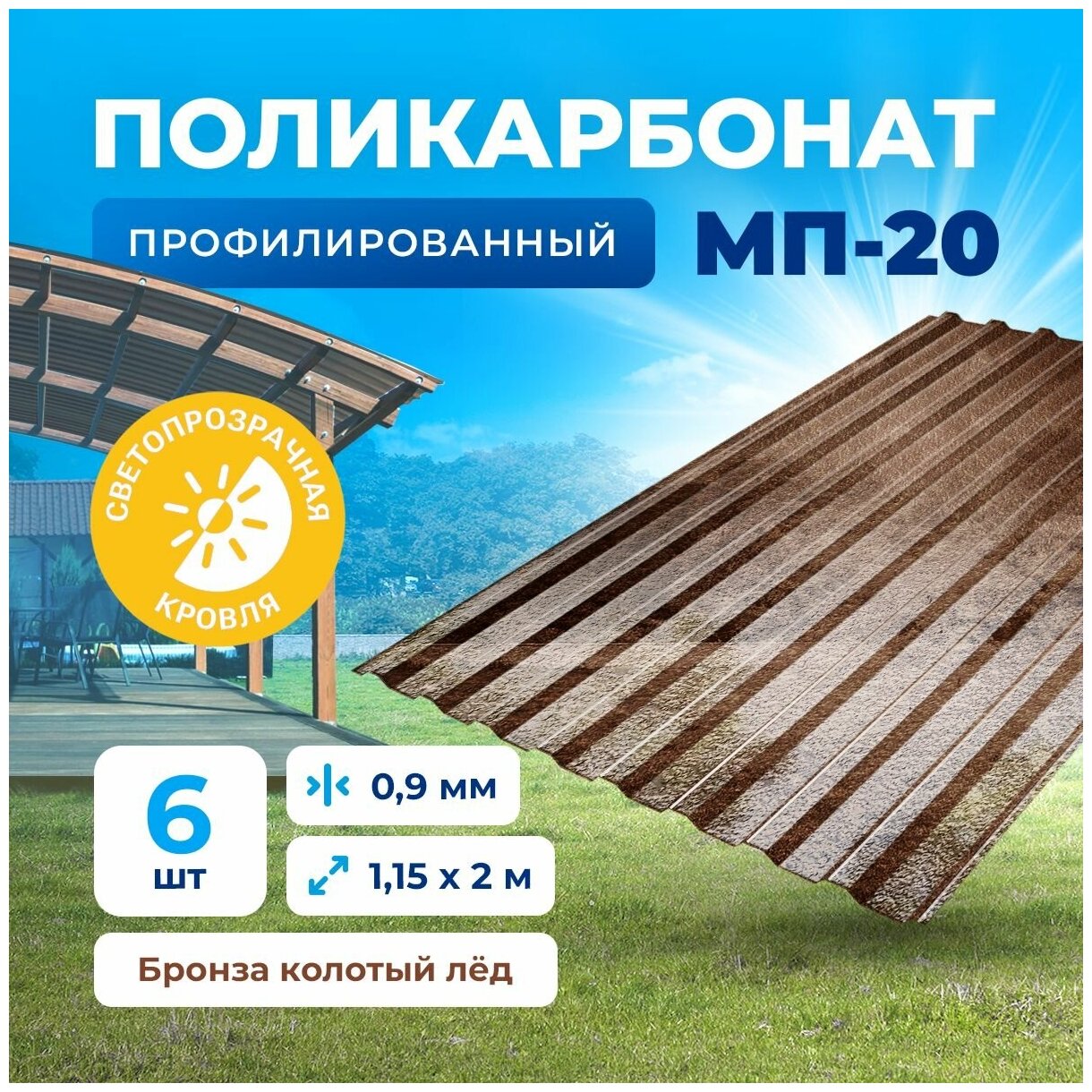 Профилированный монолитный поликарбонат - пластиковый профлист. Цвет Бронза колотый лед 0.9мм 2м 6 листов интересное: