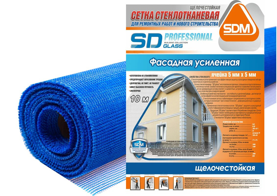 СохранитьSDM Сетка стеклотканевая 160 SD-GLASS Professional фасадная усиленная 5х5мм, 1м х 10м 00-00000605 интересное: