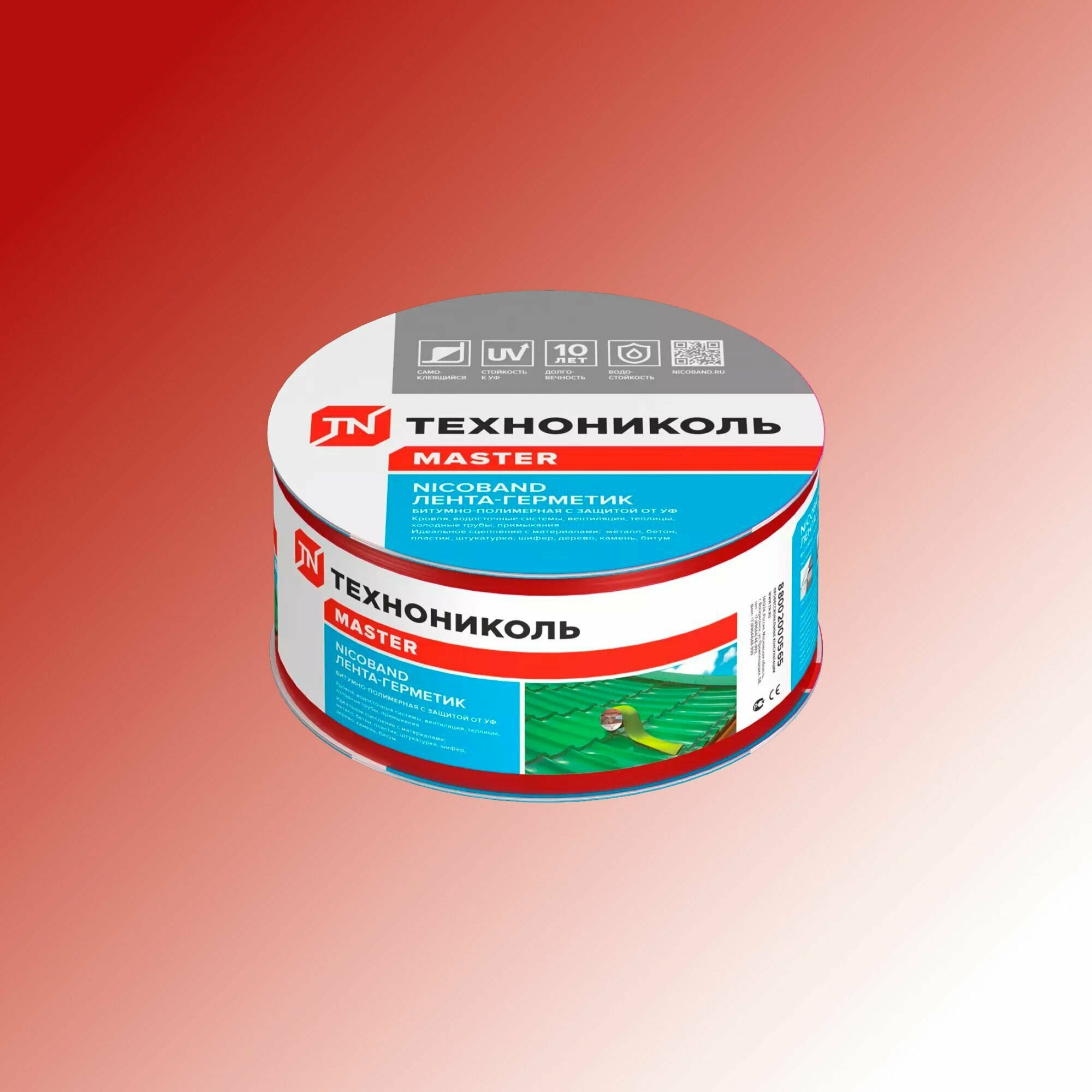 Герметизирующая лента Никобэнд ТЕХНОНИКОЛЬ (Nicoband) самоклеющаяся лента-герметик, красный 10 м х 20см