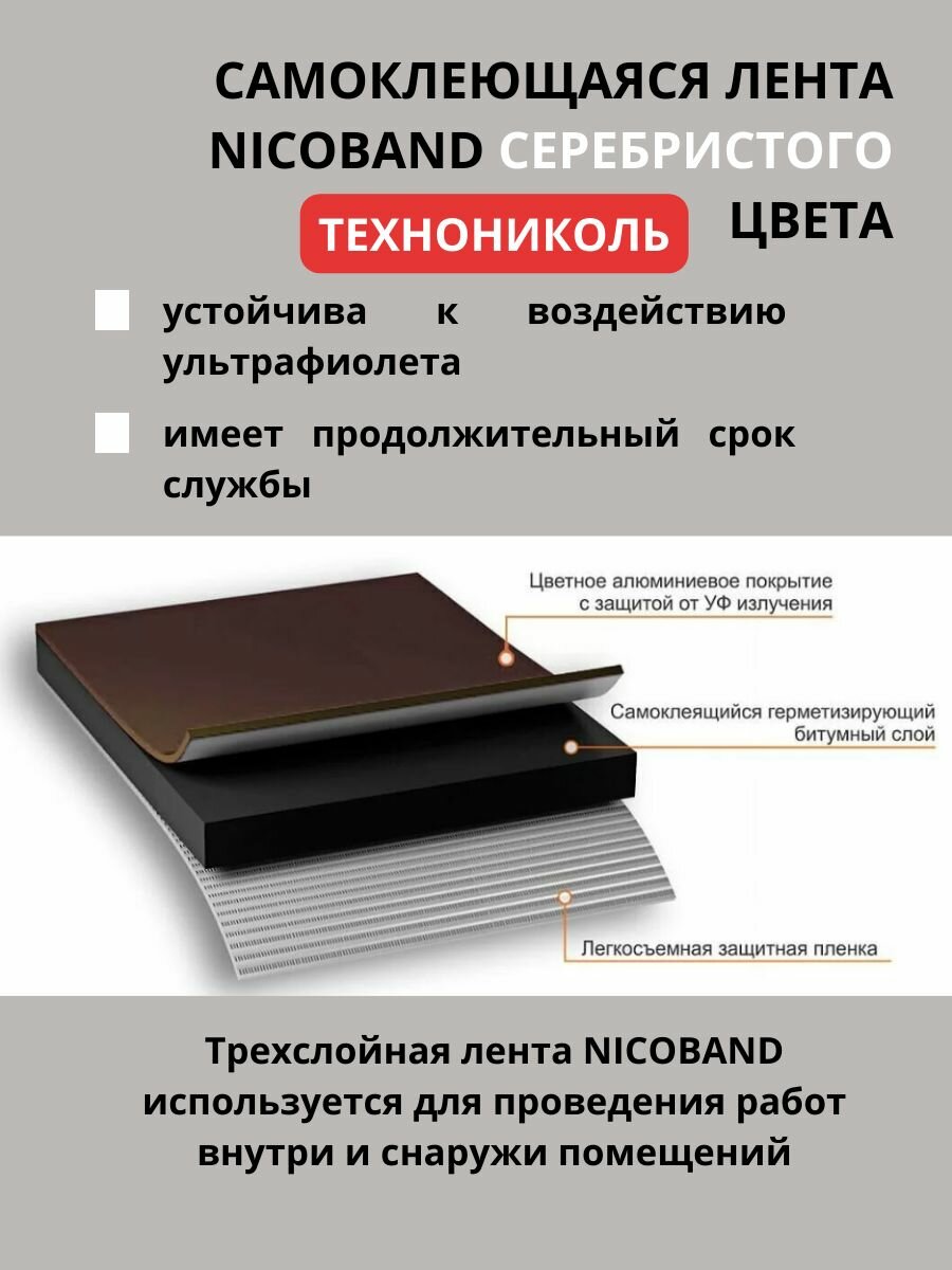 Герметизирующая лента 10м*10см серебристая самоклеящаяся NICOBAND Технониколь