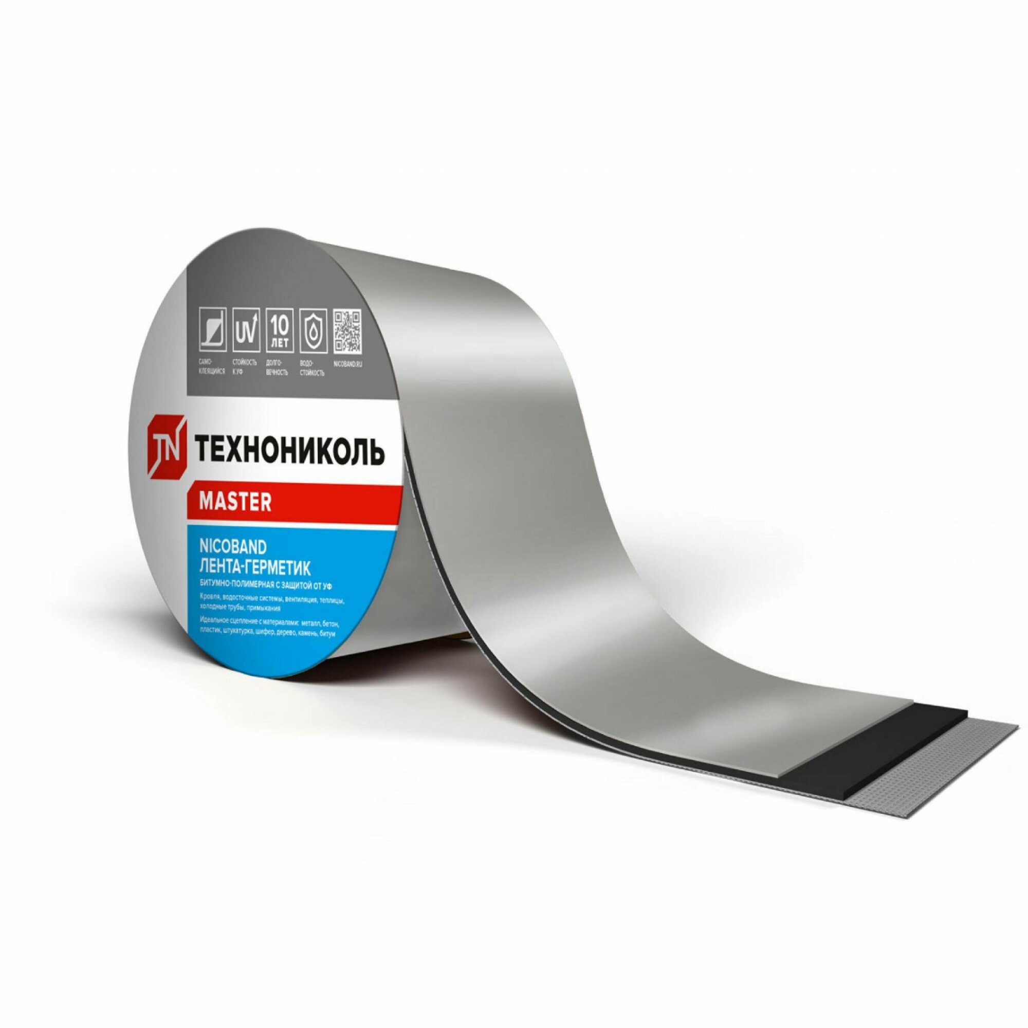 Лента-герметик ТехноНиколь NICOBAND, самоклеящаяся, Серебристая, 3м х 10см, универсальная