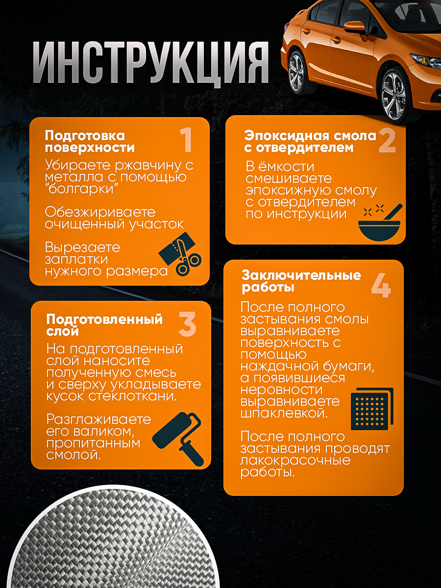 Стеклоткань стекловолокно для автомобиля размер 1х3м плотность 100 г/м2
