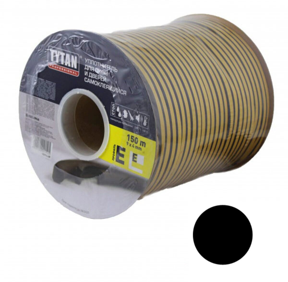 Купить Уплотнитель для окон и дверей самоклеящийся TYTAN Professional Е-профиль 9х4мм , 150м черный