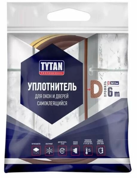 Ниже Вы можете прочитать отзывы на Уплотнитель для окон и дверей самоклеящийся TYTAN Professional D-профиль 9х7,5мм , 6м коричневый, ознакомится с подробными характеристиками, посмотреть интересные обзоры и фотографии на Уплотнитель для окон и дверей самоклеящийся TYTAN Professional D-профиль 9х7,5мм , 6м коричневый.