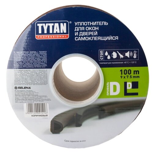 Уплотнитель для окон и дверей самоклеящийся TYTAN Professional D-профиль 9х7,5мм , 100м коричневый