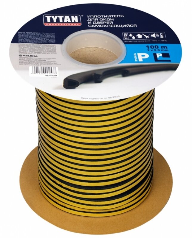 Уплотнитель для окон и дверей самоклеящийся TYTAN Professional Р-профиль 9х5,5мм , 100м черный
