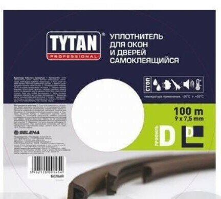 Уплотнитель для окон и дверей самоклеящийся TYTAN Professional D-профиль 9х7,5мм , 100м белый