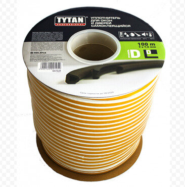 Уплотнитель для окон и дверей самоклеящийся TYTAN Professional D-профиль 9х7,5мм , 100м черный