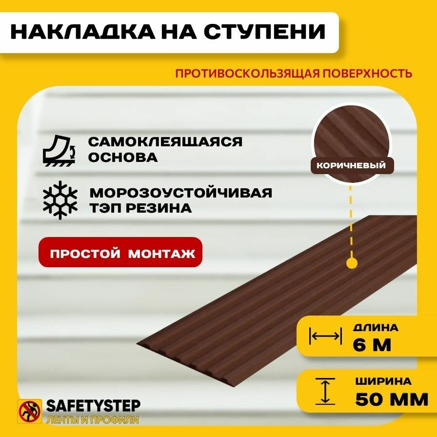 Самоклеящаяся резиновая тактильная полоса против скольжения, 50 мм х 3 мм, цвет коричневый, длина 6 метров интересное: