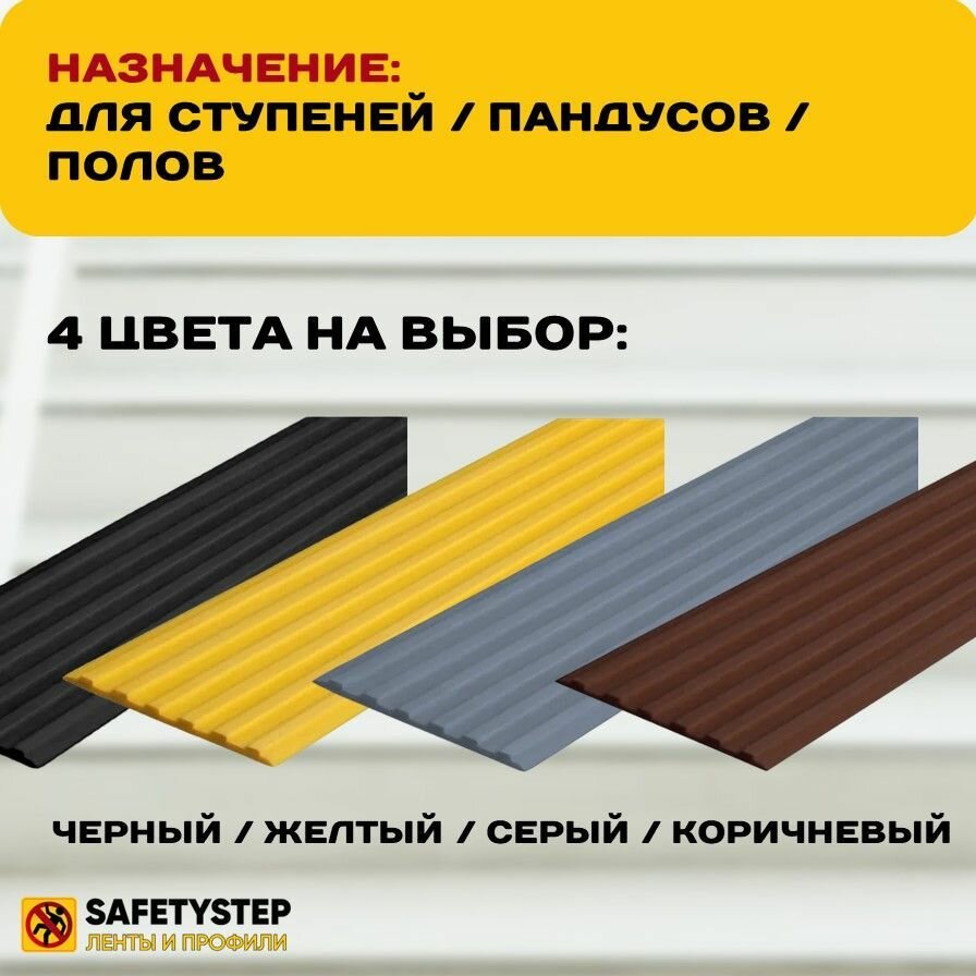 | Дополнительная информация | Самоклеящаяся резиновая тактильная полоса против скольжения, 50 мм х 3 мм, длина 6 метров |