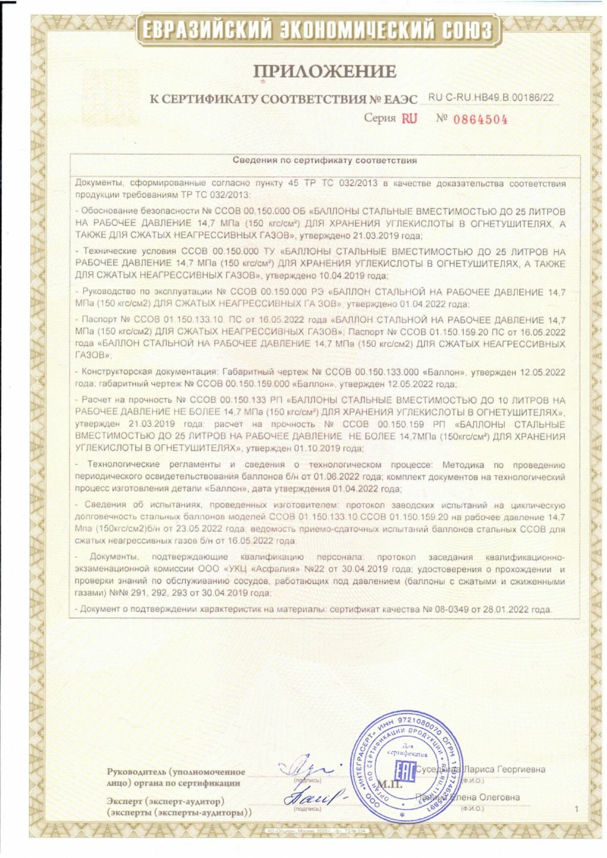 | Дополнительная информация | Материал баллона - высоколегированная сталь, которая выдерживает внешние и внутренние нагрузки. |
