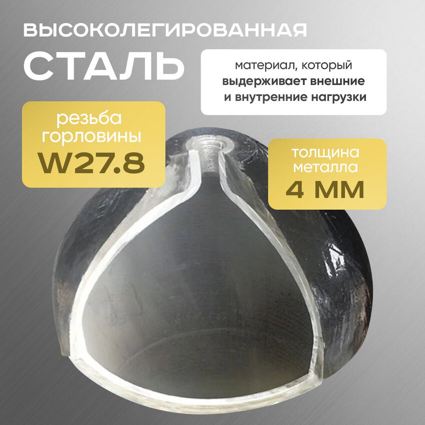 | Дополнительная информация | Материал баллона - высоколегированная сталь, которая выдерживает внешние и внутренние нагрузки. |