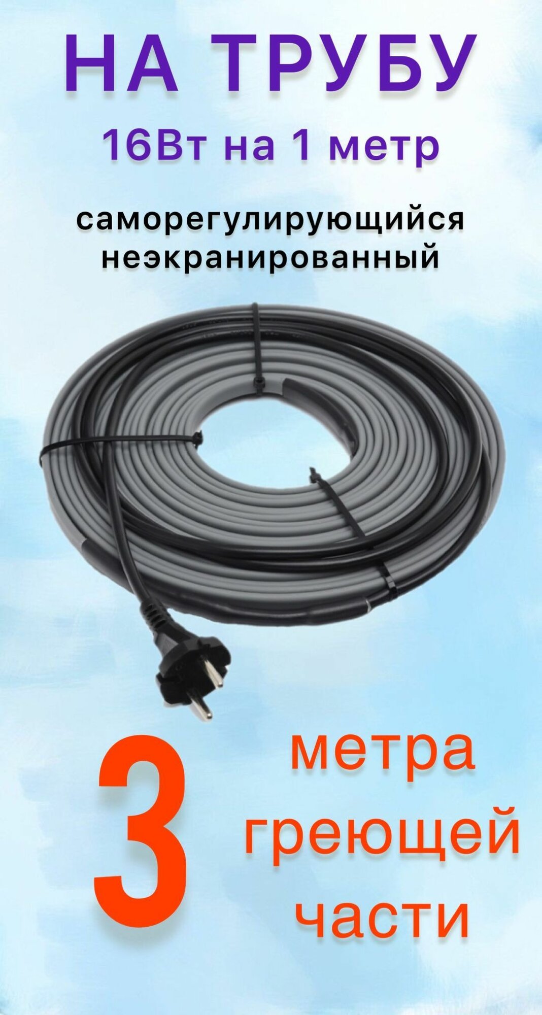 Купить Греющий самрег. кабель на трубу. 16 Вт на м. (3м)