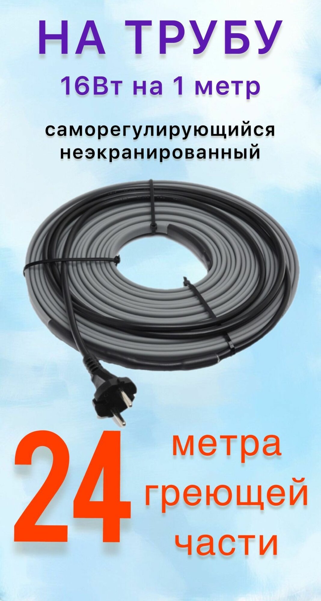 Греющий самрег. кабель на трубу. 16 Вт на м. (6м)