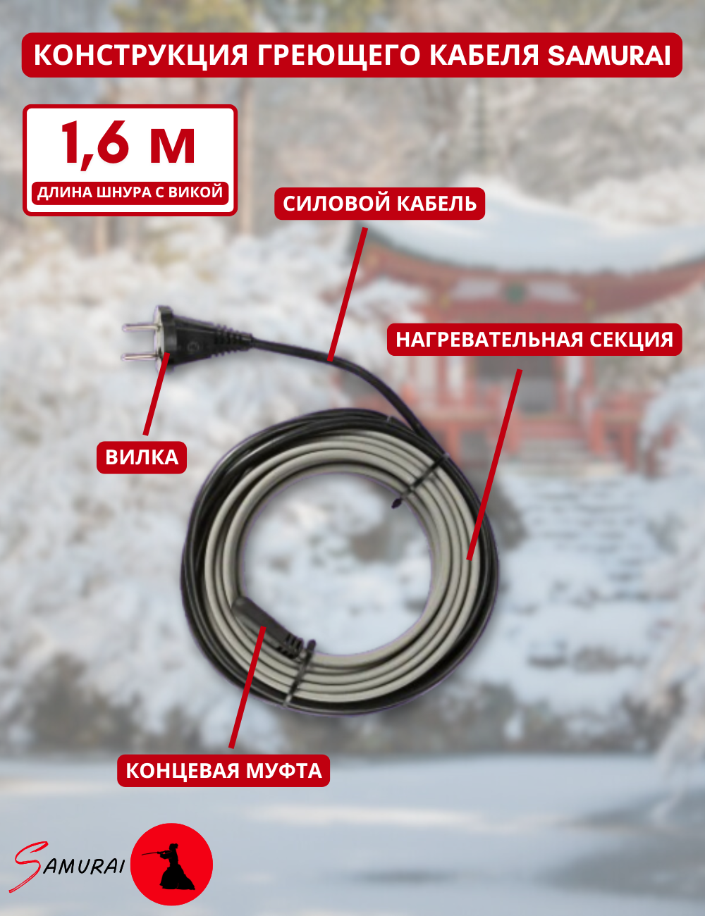 Греющий кабель обогрев люкс Греющий саморегулирующийся кабель в трубу 6 метров Обогрев Люкс с сальником