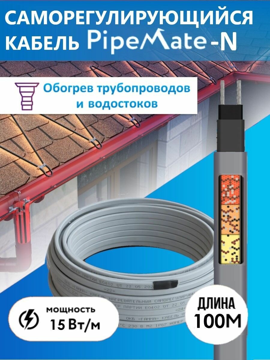 СохранитьГреющий кабель саморегулирующийся для обогрева трубопроводов и водостоков PipeMate-N, 15 Вт/м, 100 м. интересное:
