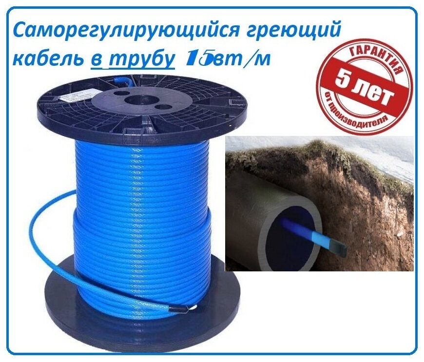 Саморегулирующийся греющий кабель в трубу 15вт/м -15 м