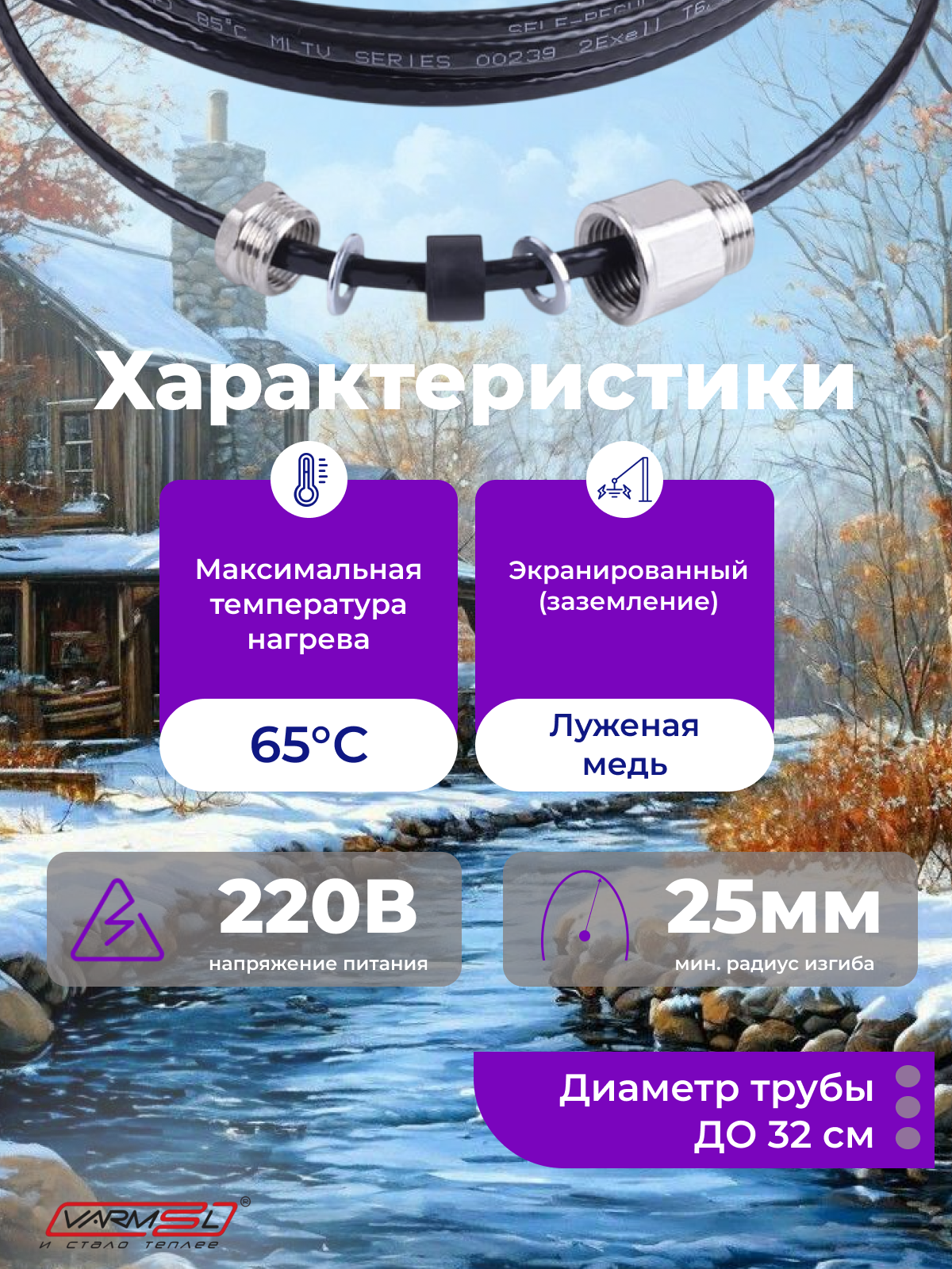 СохранитьКабель для обогрева труб Varmel Freeze Guard 16VFGM2-CF-8м секция (пищевой) интересное: