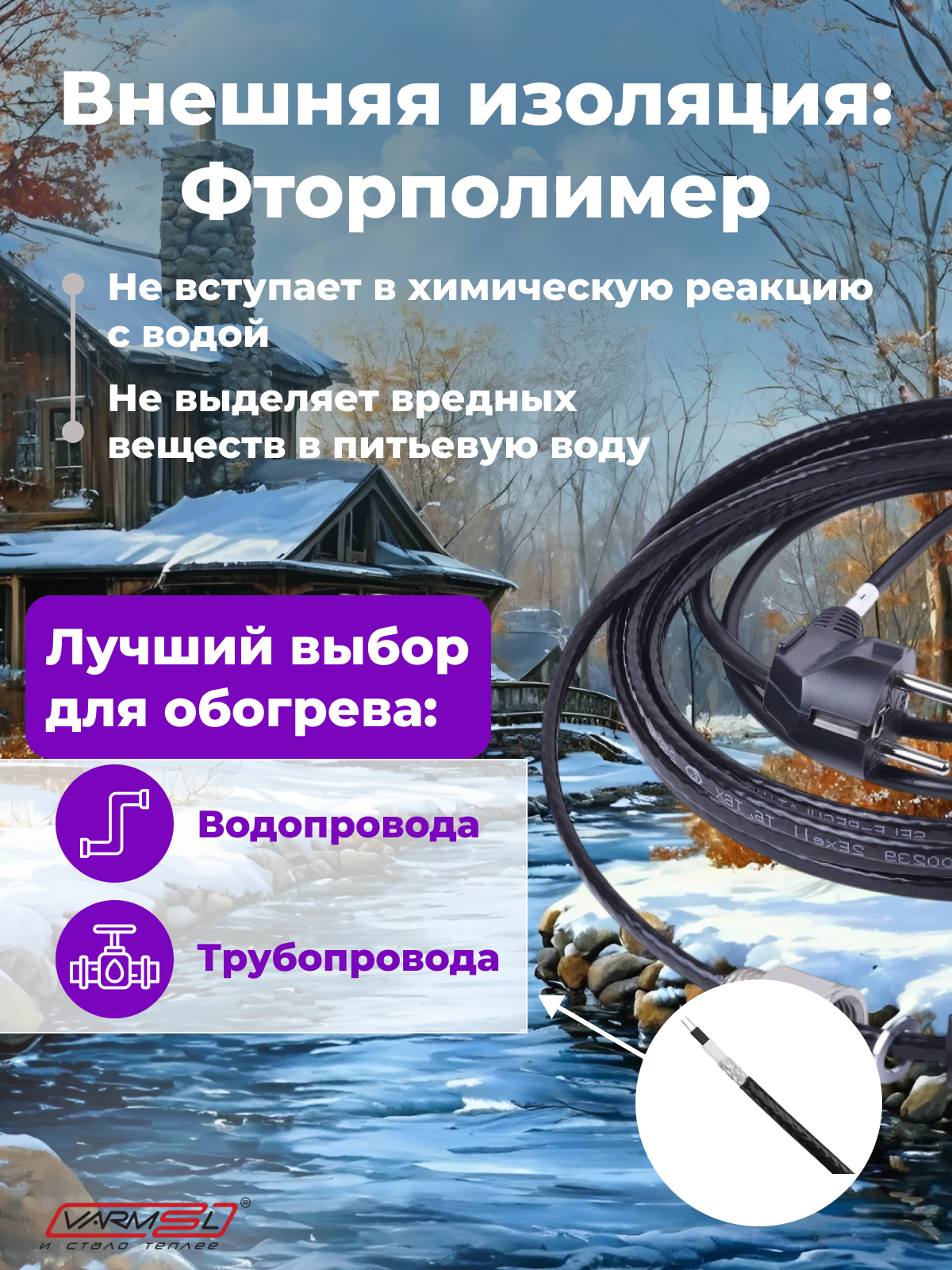 Греющий кабель для обогрева труб Varmel Freeze Guard 16VFGM2-CF-4м секция (пищевой)