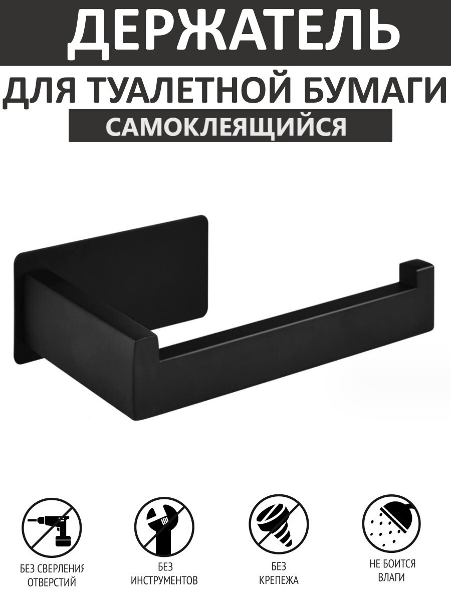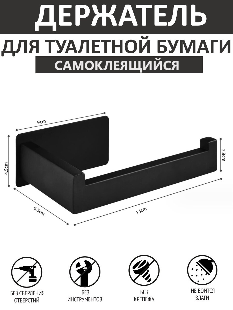 Набор держатель для туалетной бумаги настенный / Крючок для полотенца / крючок вешалка на липучке, самоклеящийся, чёрный