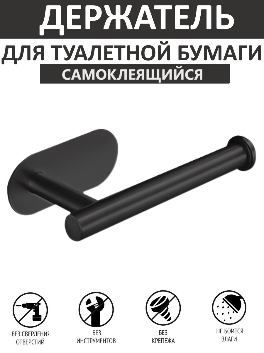 Держатель для туалетной бумаги настенный / органайзер для туалетной бумаги / крючок вешалка на липучке, самоклеящийся, чёрный
