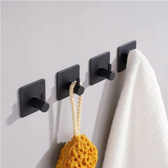 Крючки настенные самоклеящиеся, 4 штуки, металл, черный цвет интересное: