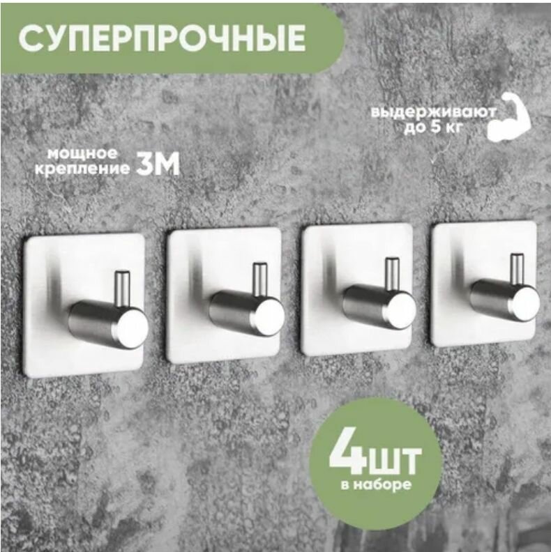 Крючок настенный самоклеющийся хром, набор 4шт., металл интересное: