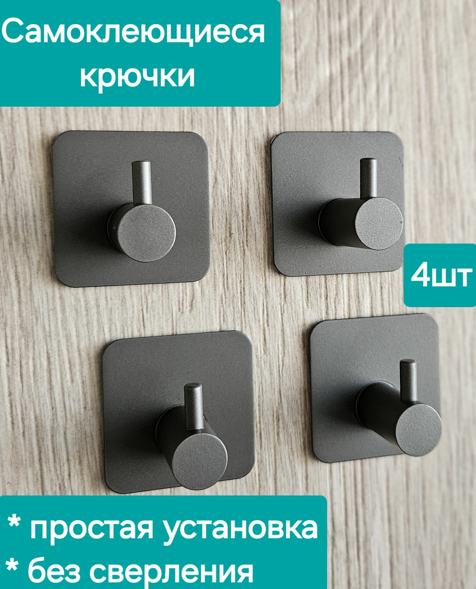 Крючок настенный самоклеющийся матовый серый, набор 4шт., металл интересное: