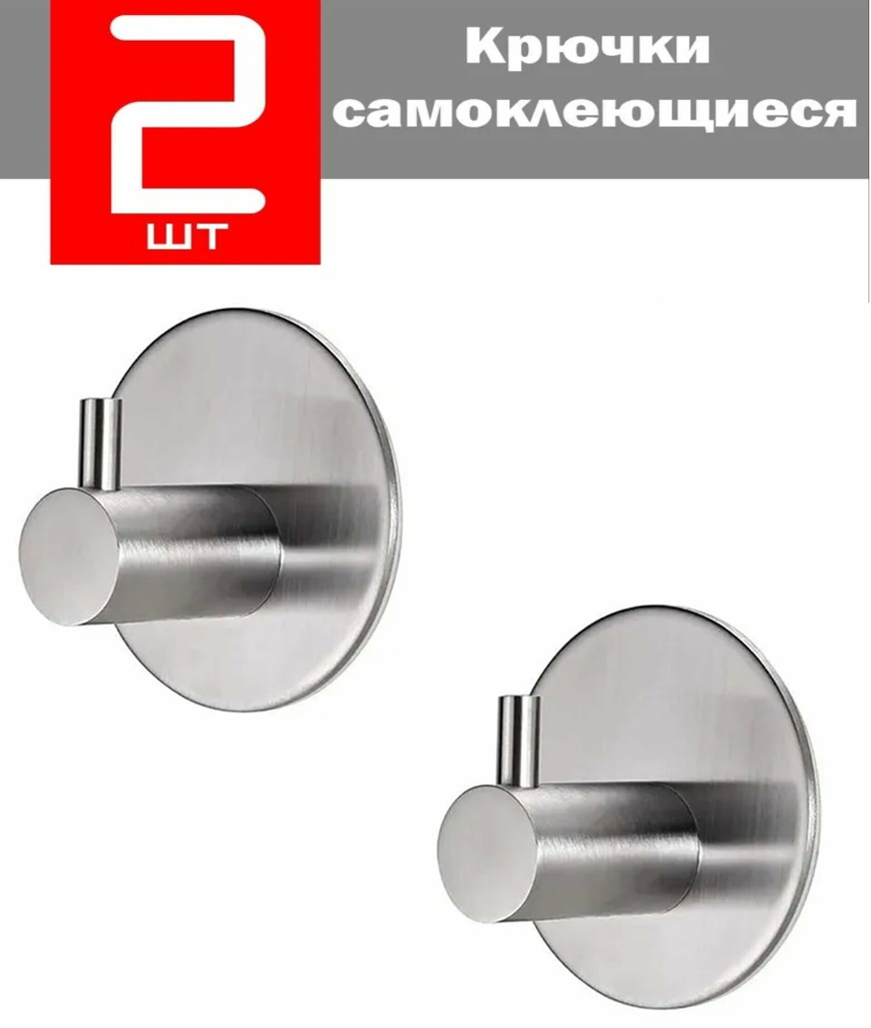 Купить Крючки самоклеящиеся металлические для ванной и кухни, цвет- матовый хром, в комплекте 2 штуки