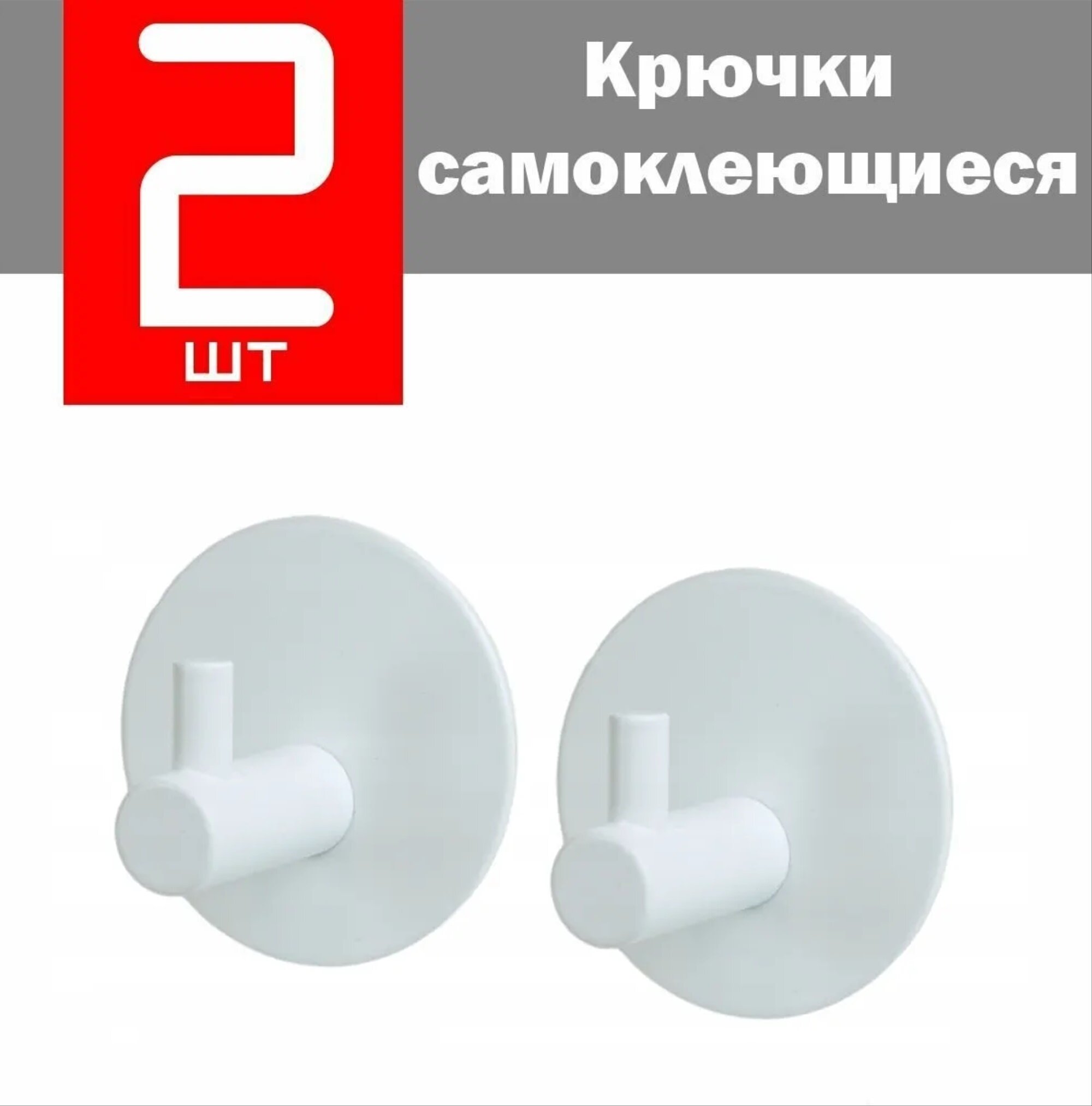 Крючки самоклеющиеся металлические для ванной и кухни в комплекте 2шт // Цвет: белый