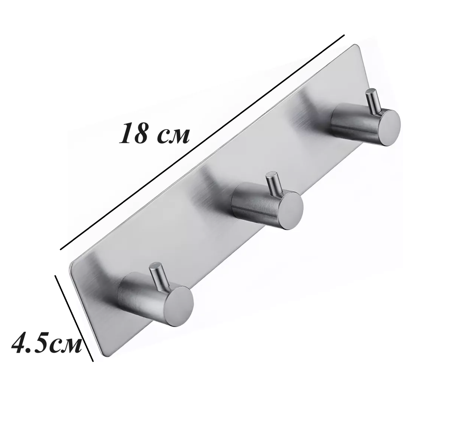 Крючки самоклеящиеся металлические для ванной и кухни, цвет- матовый хром, в комплекте 1 шт.