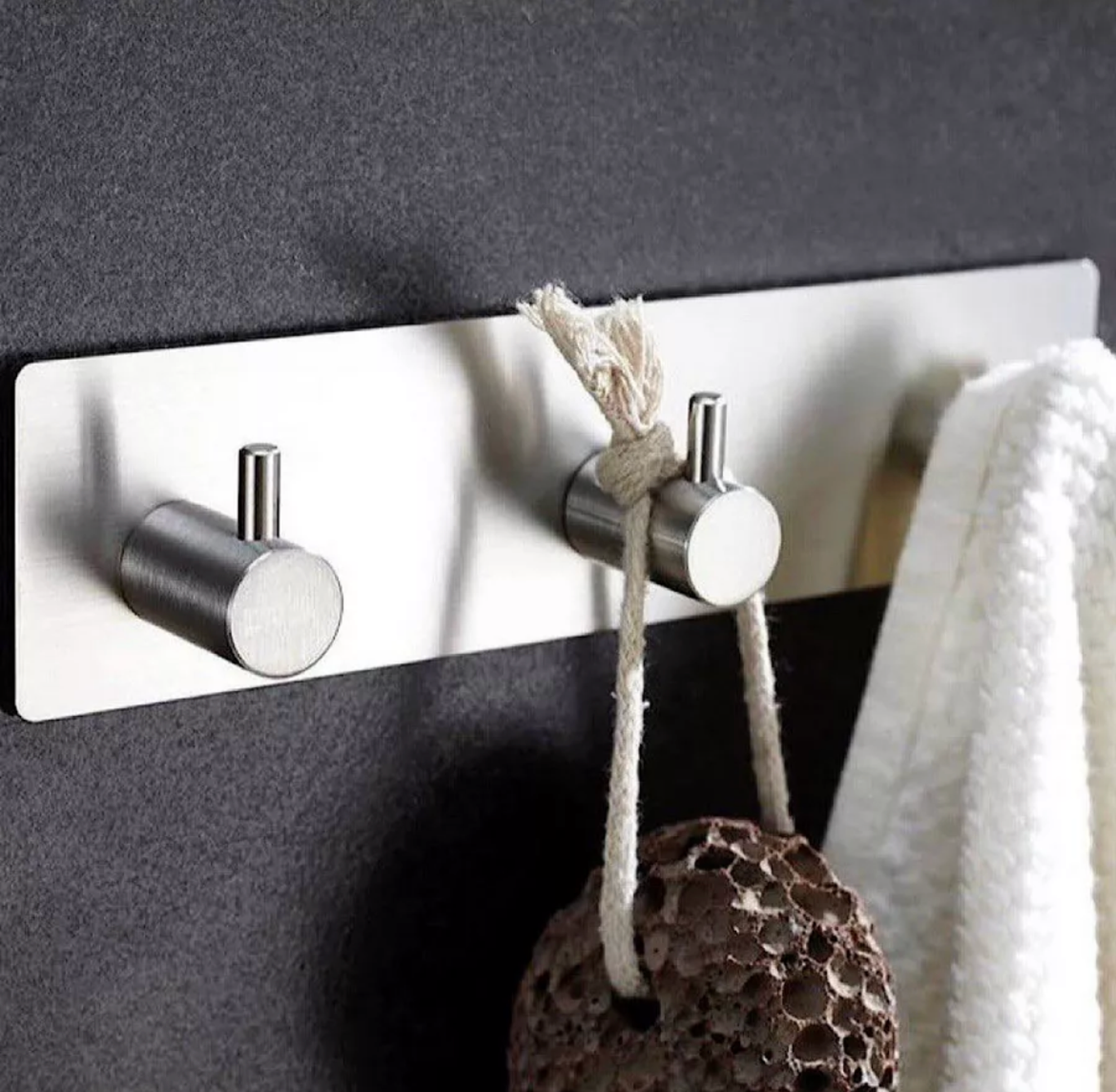 Крючки самоклеящиеся металлические для ванной и кухни, цвет- матовый хром, в комплекте 2 штуки