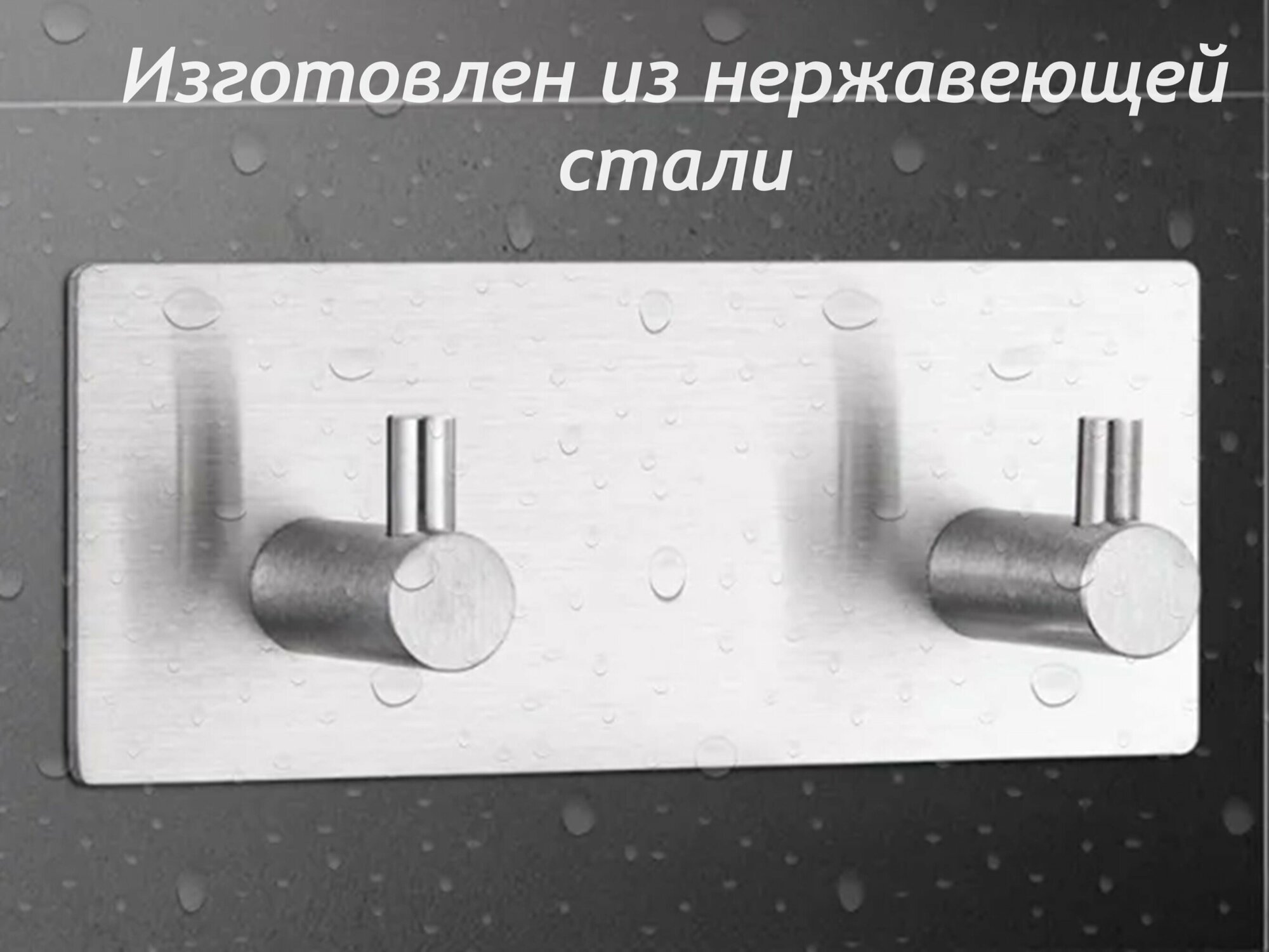 Крючки самоклеящиеся металлические для ванной и кухни, цвет- матовый хром, в комплекте 2 штуки