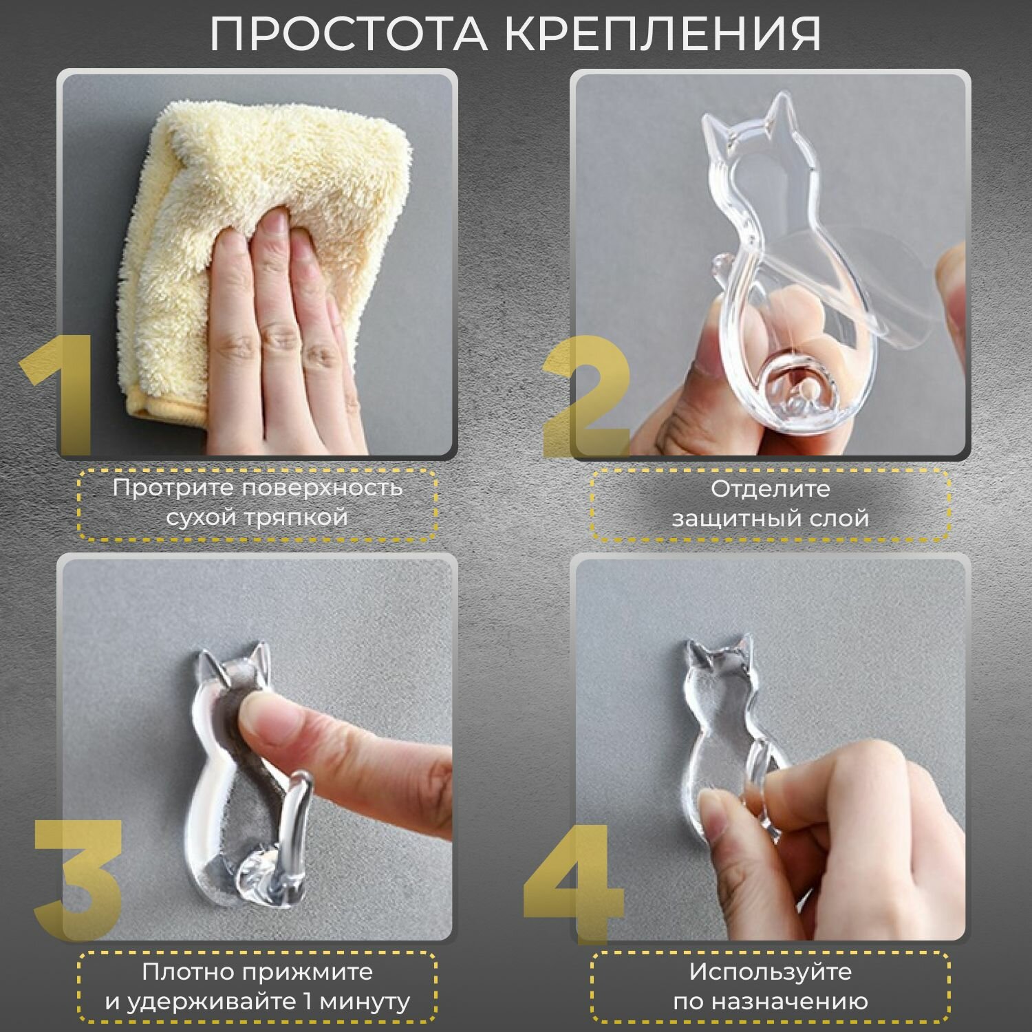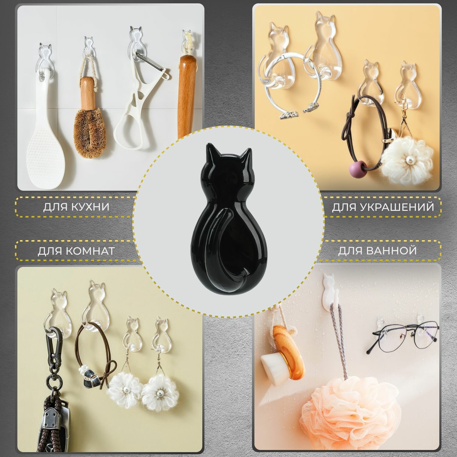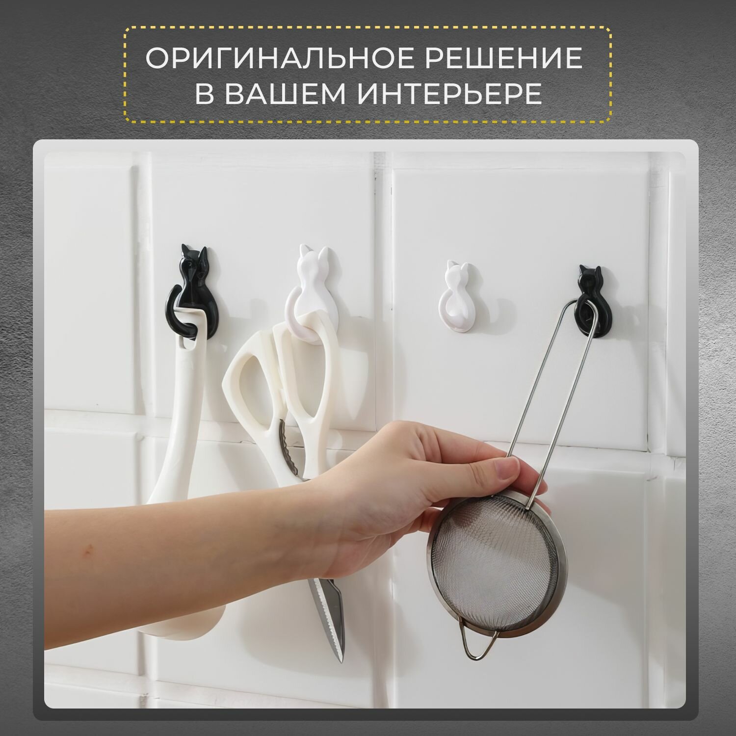 Купить Крючки самоклеящиеся настенные в виде кошки для дома, кухни, ванной или комнаты набор 4 шт.