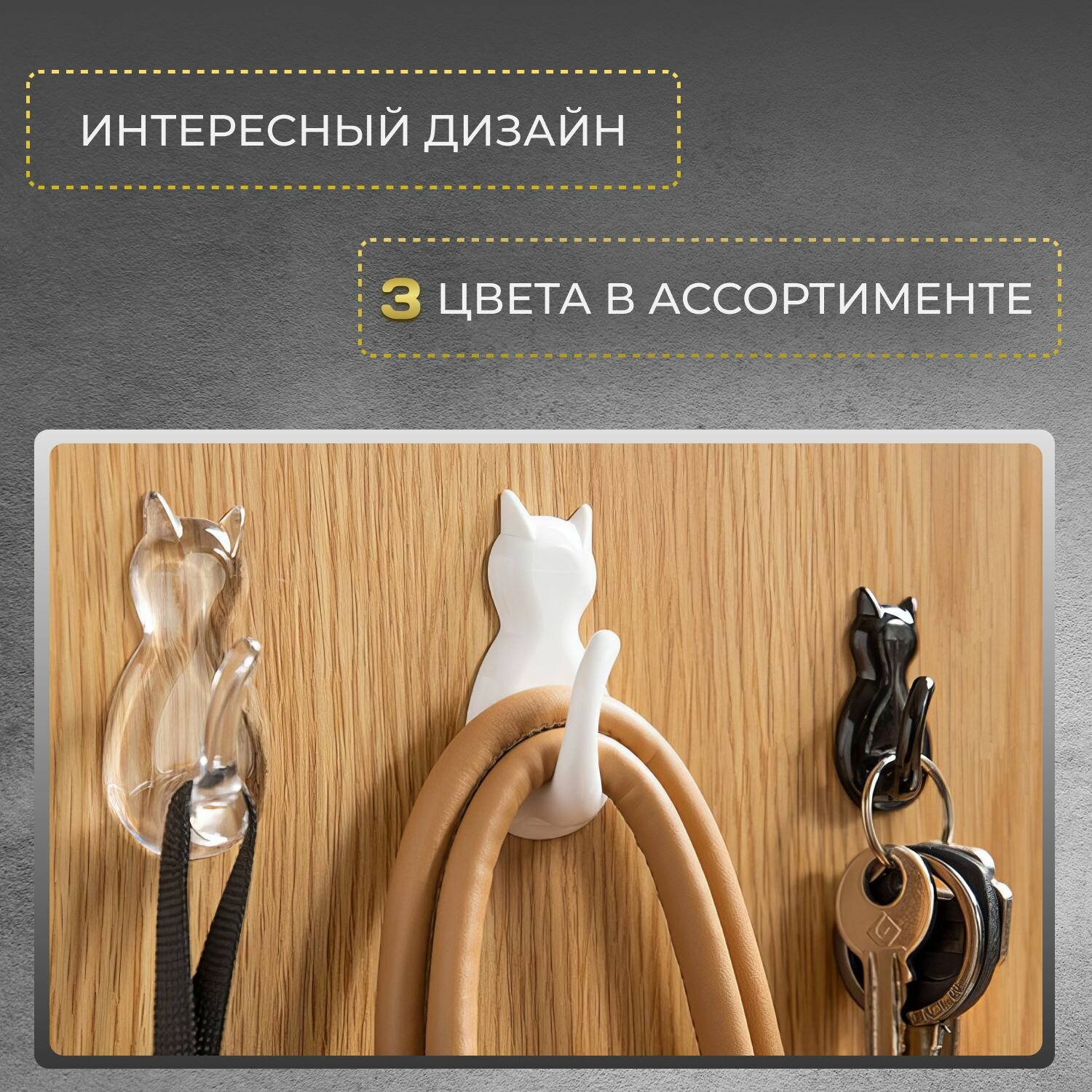 Крючки самоклеящиеся настенные в виде кошки для дома, кухни, ванной или комнаты набор 4 шт. интересное: