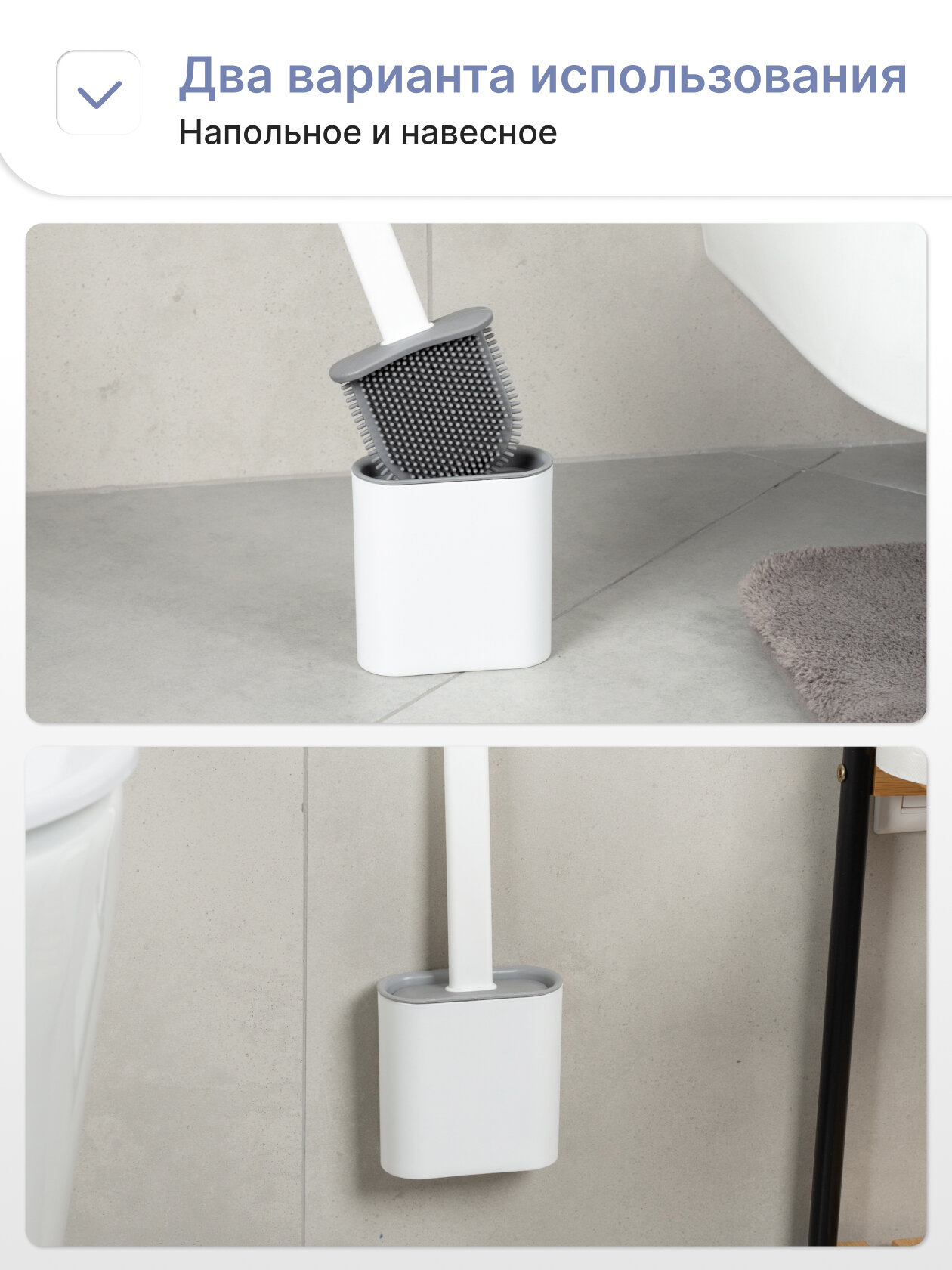 Ершик для унитаза kleber lite силиконовый напольный, подвесной, квадратный
