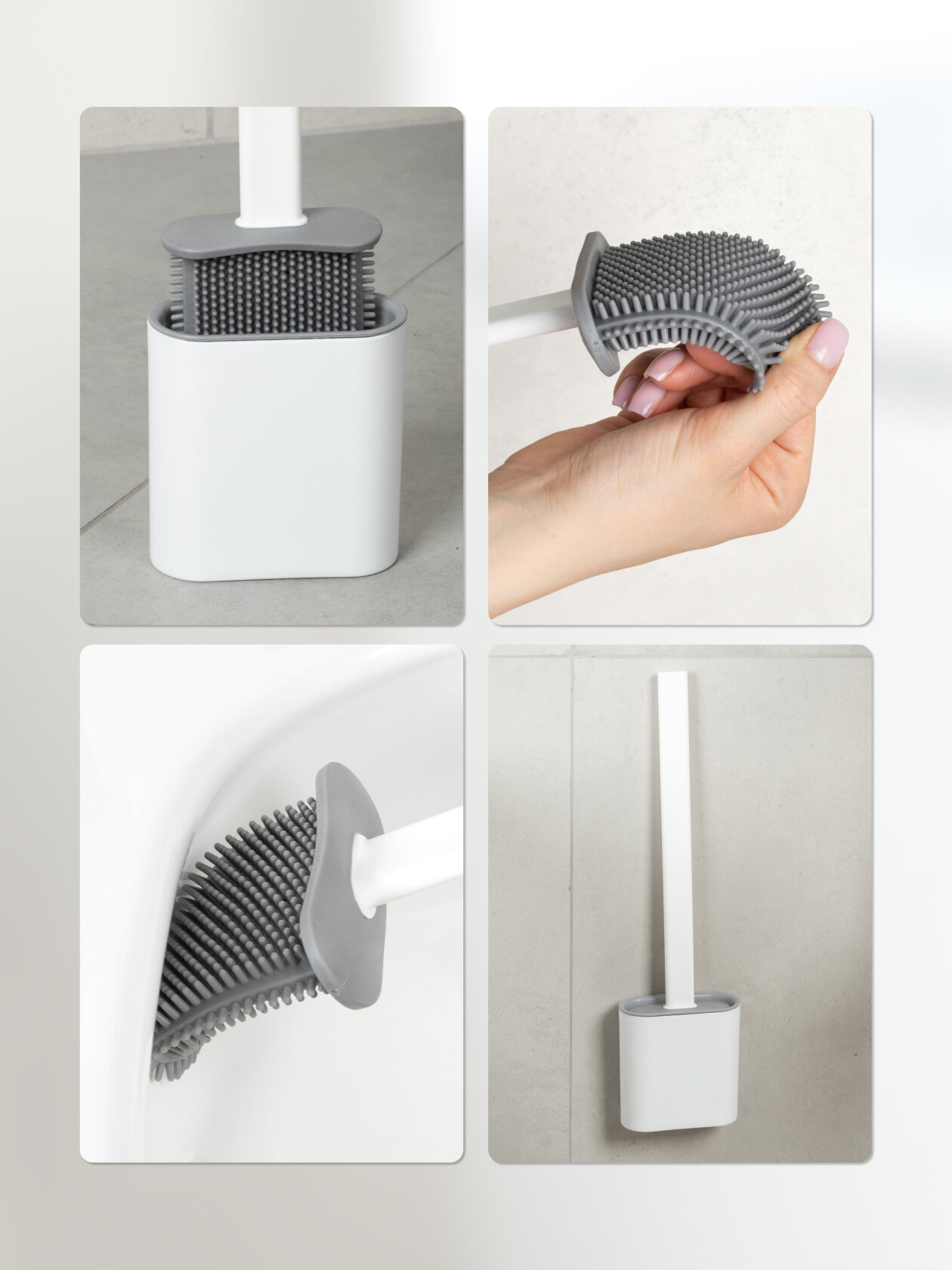 Ершик для унитаза силиконовый Kleber Lite, белый/серый