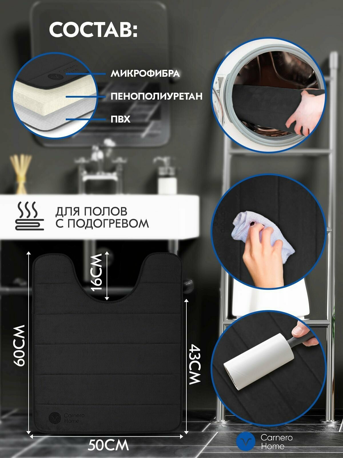 Коврик в туалет Carnero, с вырезом под унитаз, противоскользящий, 50х60 см