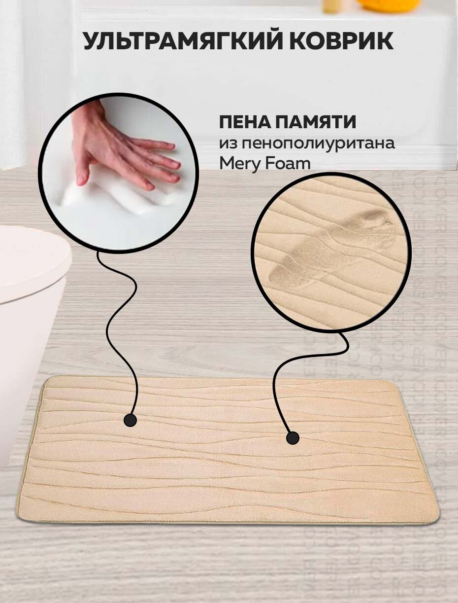 Коврик для ванной и туалета противоскользящий, набор, прикроватный коврик, 2 шт. Ridberg Bолна 40x60, 50x80, светло- бежевый