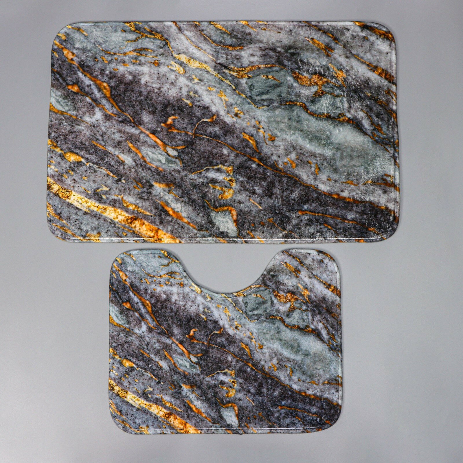 Доляна Коврики для ванной и туалета Доляна «Мрамор», 2 шт: 79×50 см, 50×39 см, цвет серый